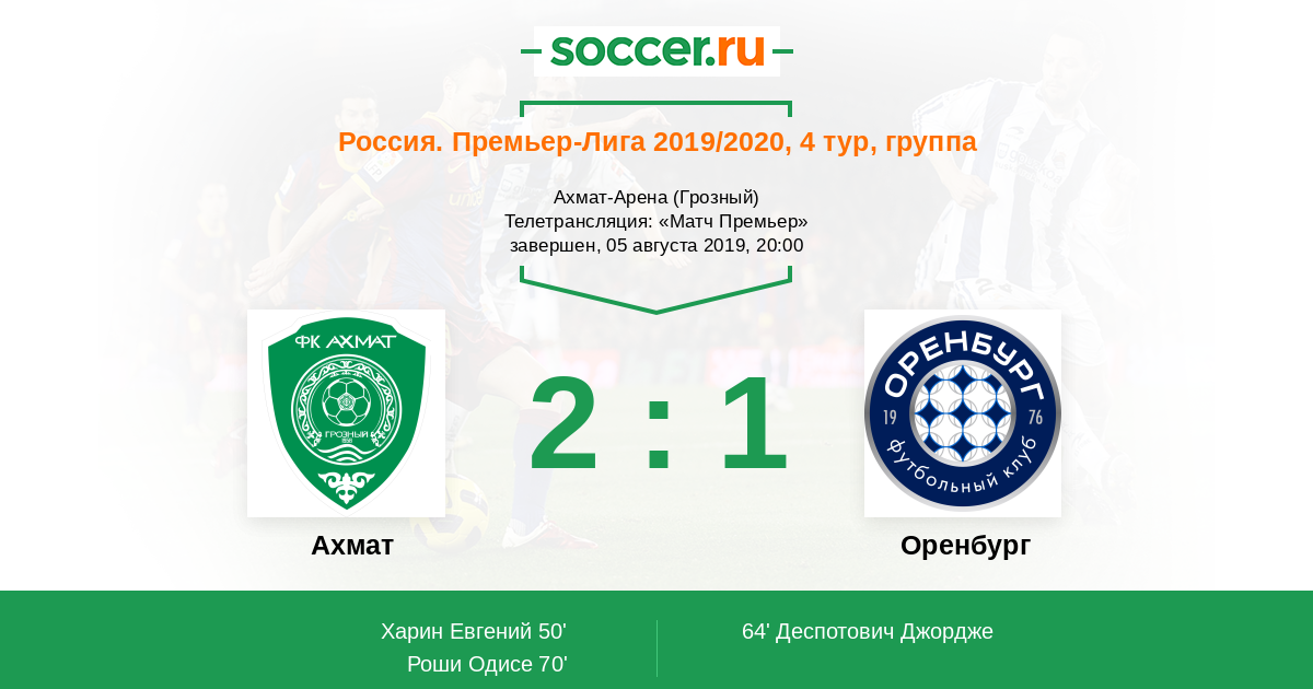 Грозный, Ахмат-Арена, зрителей: 11721 Телетрансляция: «Матч Премьер»