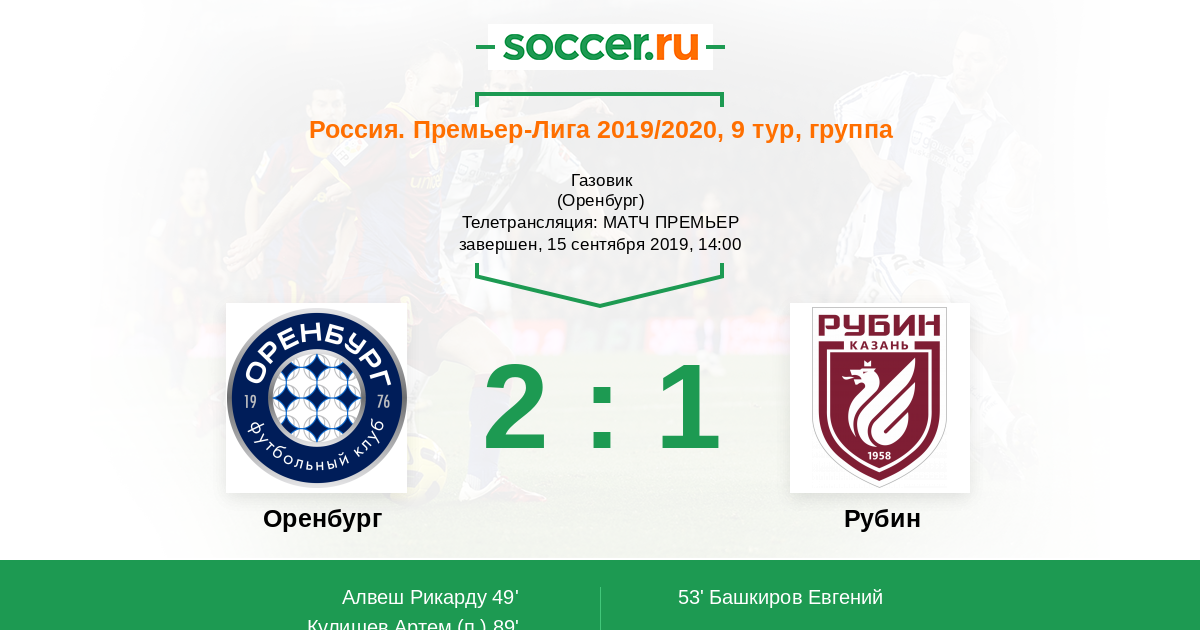 Оренбург, Газовик, зрителей: 4767 Телетрансляция: МАТЧ ПРЕМЬЕР