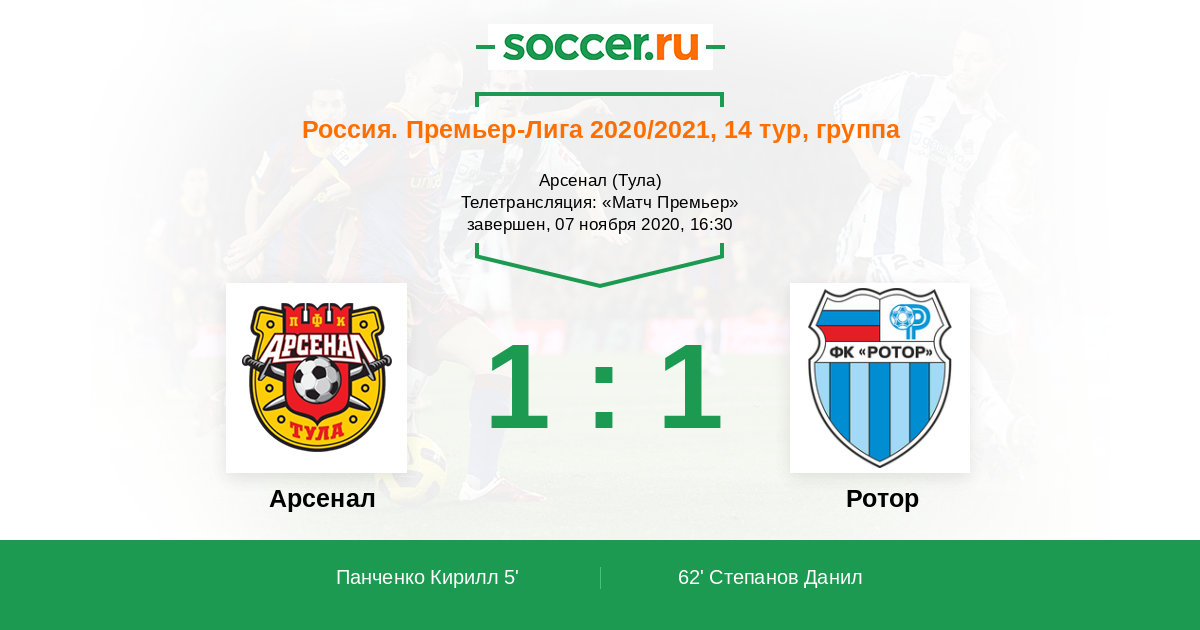 Тула, Арсенал, зрителей: 1743 Телетрансляция: "Матч Премьер"