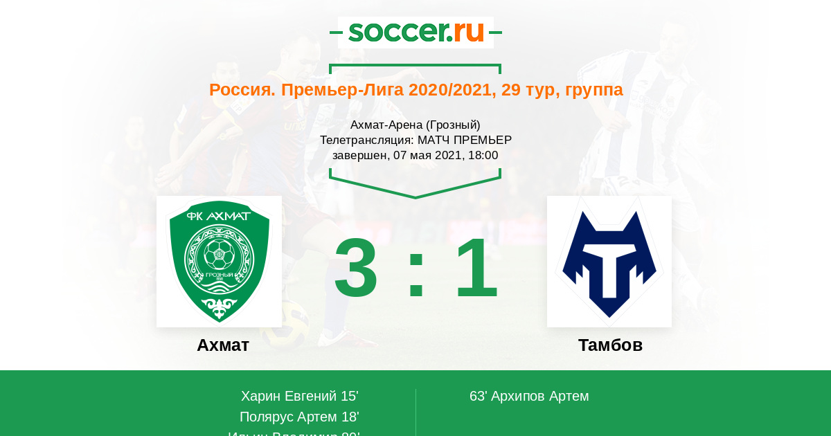 Грозный, Ахмат-Арена, зрителей: 7475 Телетрансляция: МАТЧ ПРЕМЬЕР