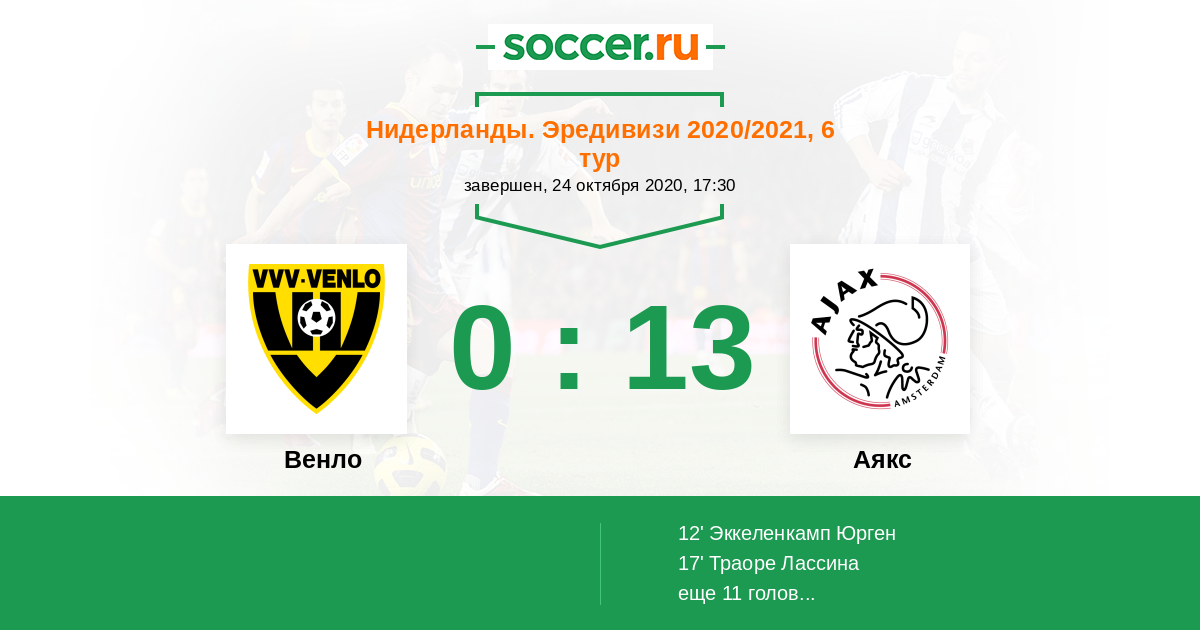 0:13 - это что-то. Был уверен в победе Аякса, но такого ужасного разгрома Венло не ожидал.