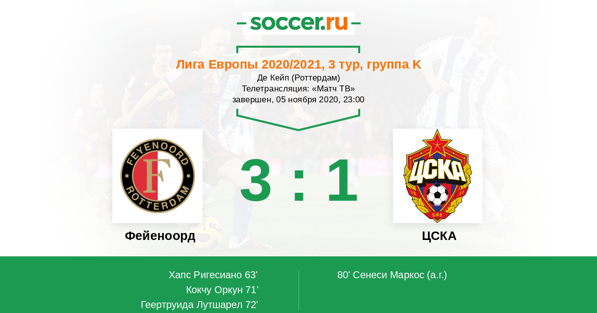 Как же так, армейцы! За 9 минут пропустить 3 мяча... Это удар ниже пояса, Фейеноорд! Кстати, когда голландский клуб забивал третий мяч, то в момент передачи был оффсайд. Но, увы, да ах:( Я разочарован игрой и результатом!