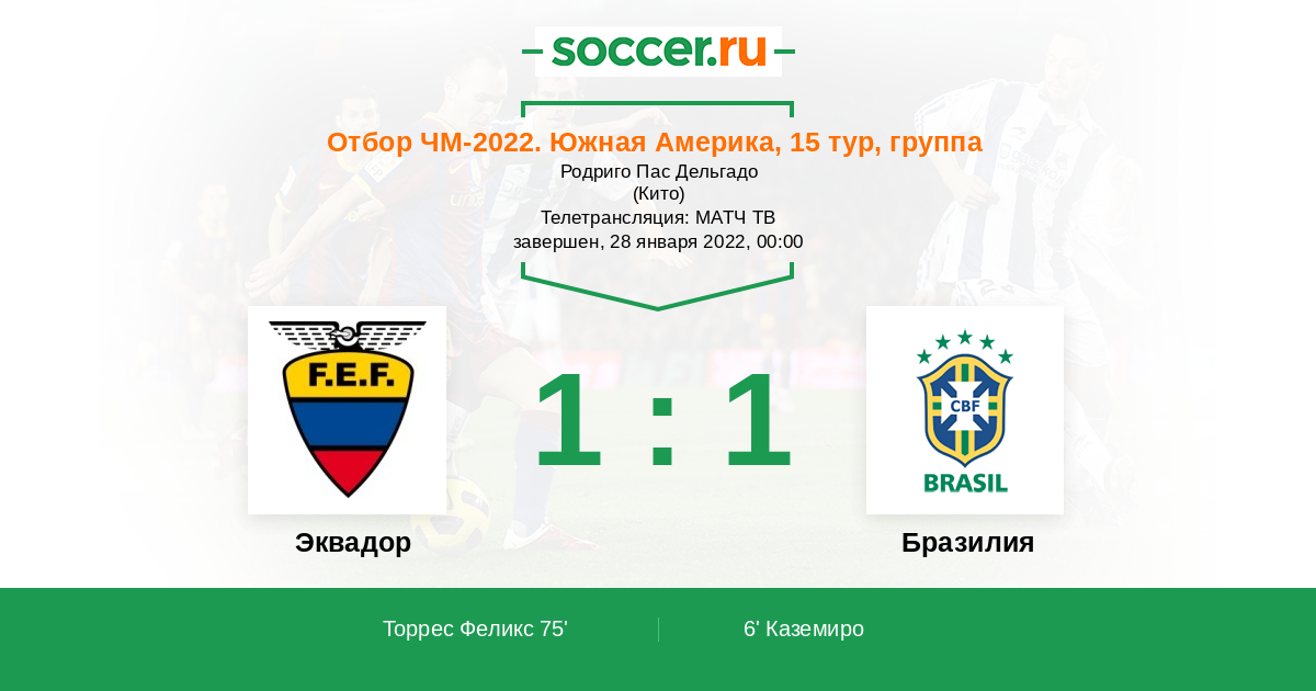 Я думаю что в этом противостоянии более чем явного фаворита на победу нет. Сборная хозяев поля Эквадор будет играть с командой Бразилии только на победу. И точно даст бой и возможно сыграет в этом матче на голевую ничью.