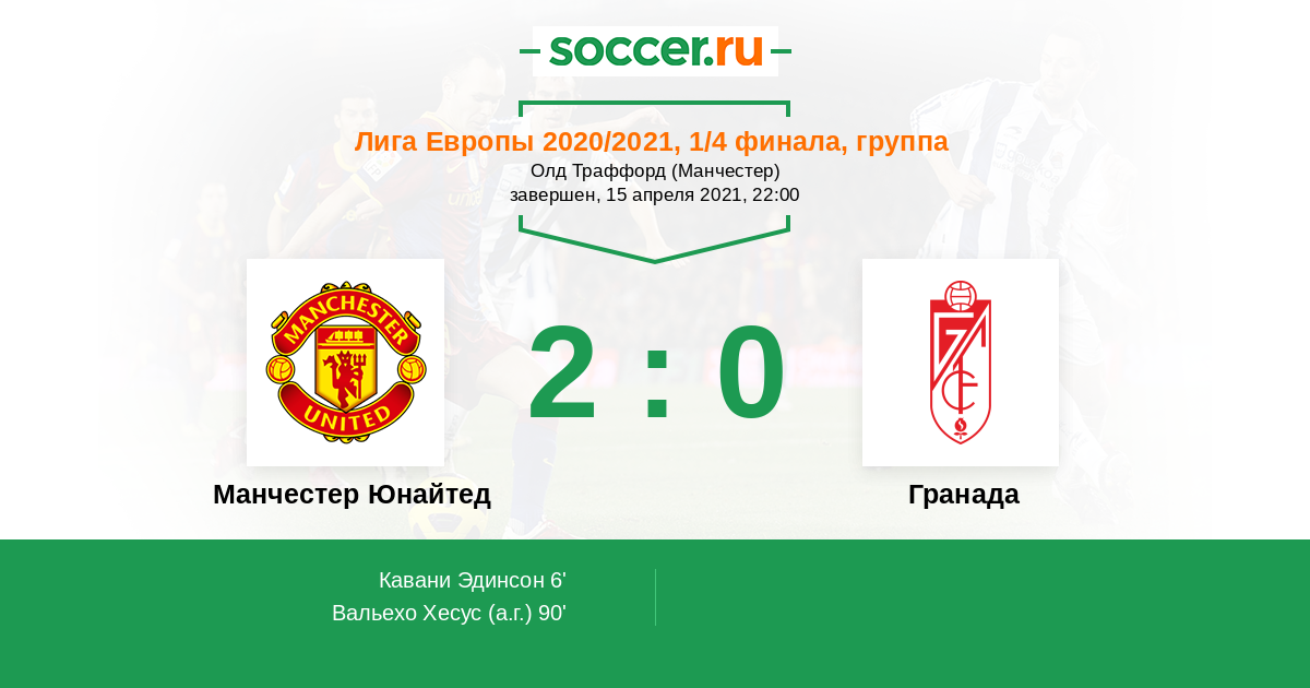 23:52 Гол Кавани помог «Манчестер Юнайтед» одержать победу над «Гранадой» и выйти в полуфинал Лиги Европы 24
