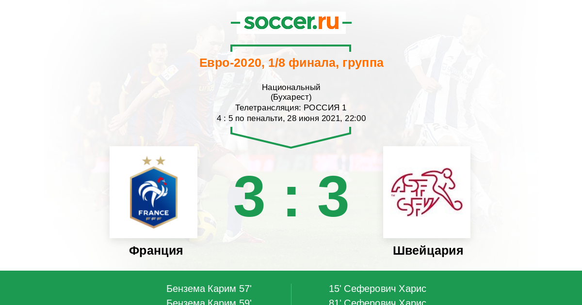 Сеферович расчехлил свою пушку именно в этом матче! Ну и Карим был прекрасен) Искренне рад за форварда мадридского Реала. Погба положил супергол, чего уж там скрывать! Ну а Мбаппе....Жалко его, если честно. Швейцарию с выходом в 1/4 финала ЕВРО! Результат крайне удивительный, конечно.