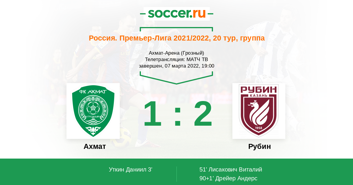 Грозный, Ахмат-Арена, зрителей: 6722 Телетрансляция: МАТЧ ТВ