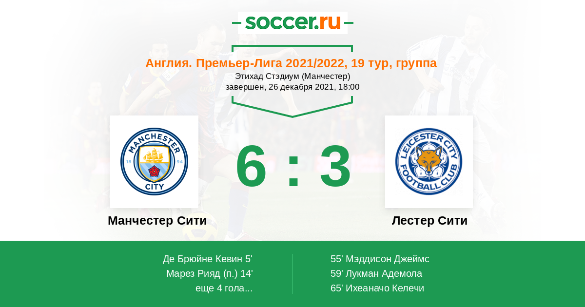 Ман Сити забил уже 44 мяча за 18 туров, а Лестер много забивает и пропускает, разница мячей у него 27:27, поэтому голов в этом матче должно быть много, но большинство из них влетят в ворота Лестера. 4:1