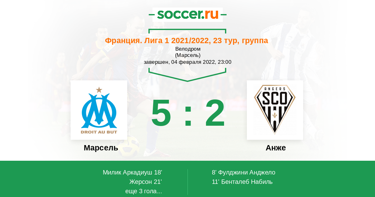 В этом сезоне “Анже” провел на выезде 11 матчей и в десяти “черно-белые” забивали как минимум один мяч. “Марсель” дома пропускает в среднем ровно один мяч за игру, но соперники забивали в семи из 11-ти матчей “южан” на “Велодроме”. При этом хозяева поля лишь в двух домашних матчах не забивали, поэтому стоит ожидать голов в этом матче от двух команд.