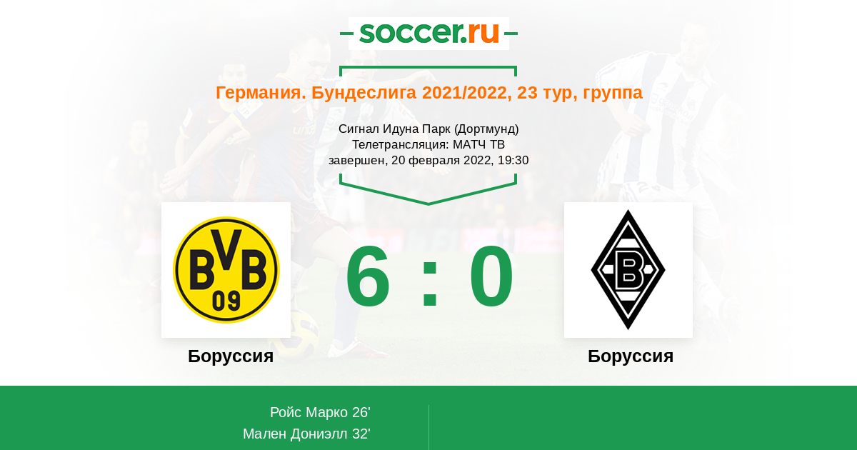Дортмунд, Сигнал Идуна Парк, зрителей: 10000 Телетрансляция: МАТЧ ТВ