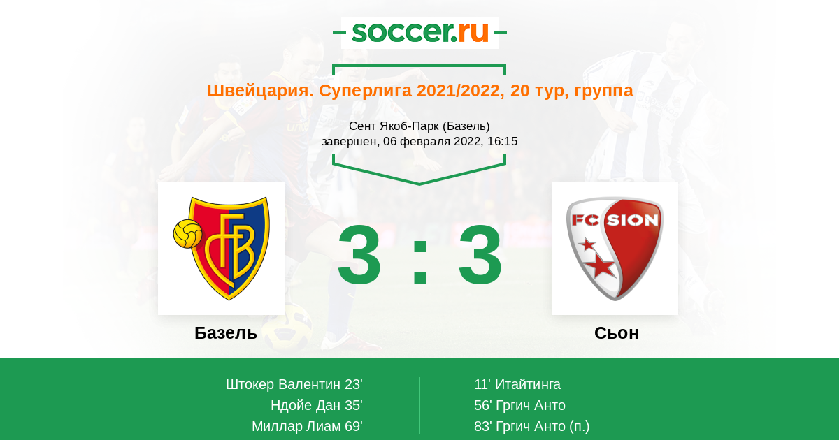 “Базель” входит в тройку самых голевых команд Суперлиги, при этом имеет лучшую оборону. Однако в последнее время подопечные Патрика Рахмена начали пропускать сильно чаще. Соперники “Базеля” забивали по меньшей мере один мяч в семи из восьми последних матчей. Команда обменялась голами в 13-ти из 18-ти последних поединков. “Сьон” забивал в 84.21% матчей в этом футбольном году, причем в четырех из пяти последних поединков он забил не менее двух мячей. В 12-ти из 19-ти проведенных встреч он обменялся голами со своими оппонентами. Можно поставить на “обе забьют - да”