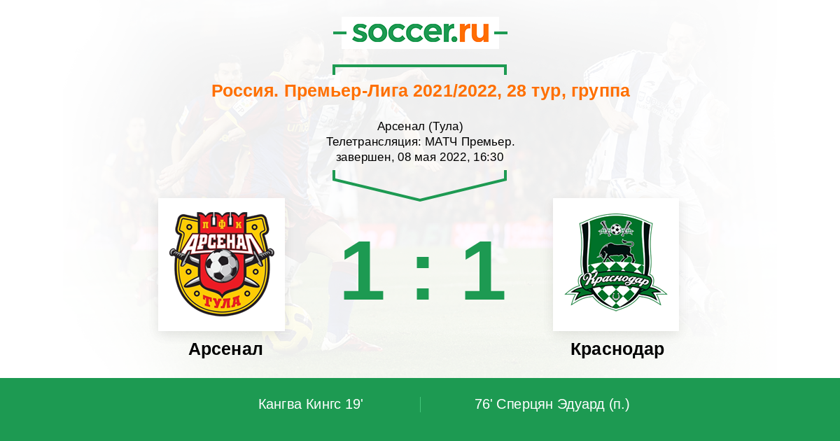 Тула, Арсенал, зрителей: 7254 Телетрансляция: МАТЧ Премьер.