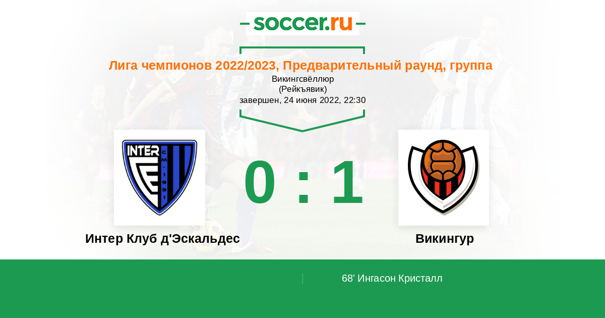 В матче Лиги чемпионов между командами Интер-Клуб д'Эскальдес и Викингур рискну поставить на победу "гостей" потому, как по факту на их стороне поддержка местных фанатов и уровень чемпионата выше андорцев.