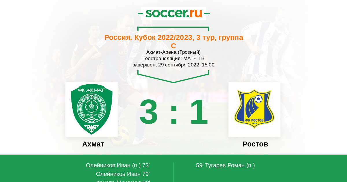 Вроде бы и веришь в Ростов, а рука не поворачивается поставить на них. Ростову нужна ротация состава, иначе на чемпионат сил не хватит, значит у Ахмата должно быть преимущество (они то точно выйдут основой). Победа Ахмата.