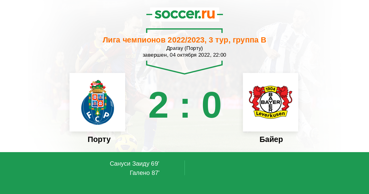 В предстоящем матче 3 - го тура группового этапа Лиги Чемпионов УЕФА 22/ 23 между командами Порту и Байер Леверкузен , считаю, что будет победа хозяев или ничья , так как и Порту и Байер не очень играют в последнее время