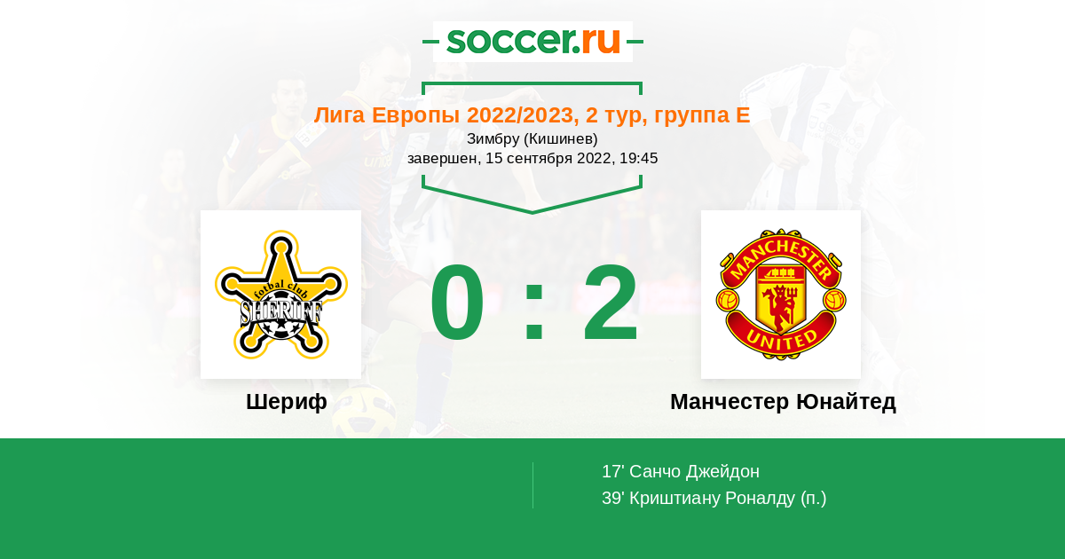 Шериф - Манчестер Юнайтед... Статус "красных дьяволов" надо подтвердить хорошей трепкой "желто-черных". Молдавские пассажиры должны занять свое почетное предпоследнее место и не более. Молдавский проект.