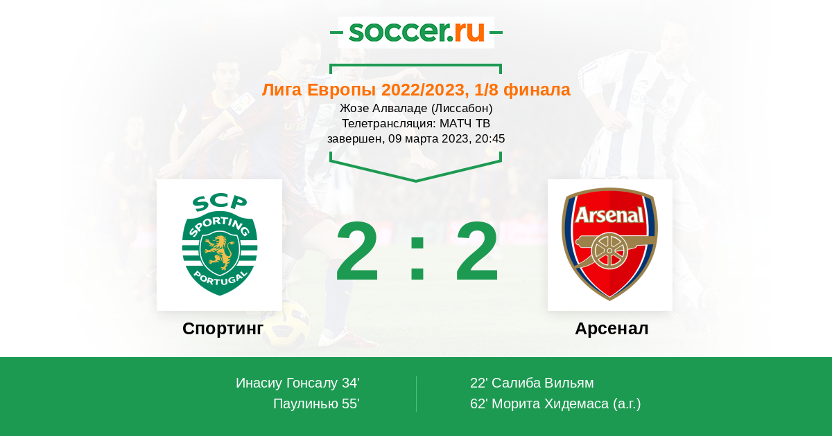 “Спортинг” попал в эту стадию Лиги Европы, заняв третье место в групповой стадии ЛЧ и обыграв “Мидтьюлланд” в 1/16 финала. Надо сказать, что португальскому клубу домашние встречи даются труднее, чем выездные – на своем поле лиссабонцы выиграли всего раз, дважды уступили и один раз сыграли вничью. “Арсенал” на выезде добился двух побед в трех матчах ЛЕ. В последний раз “Спортинг” и лондонцы встречались друг с другом в 2018-м году, тогда в обеих встречах серии “канониры” как минимум не проиграли. Думаю, что и на этот раз подопечные Микеля Артеты способны не просто не проиграть, но и добиться успеха.