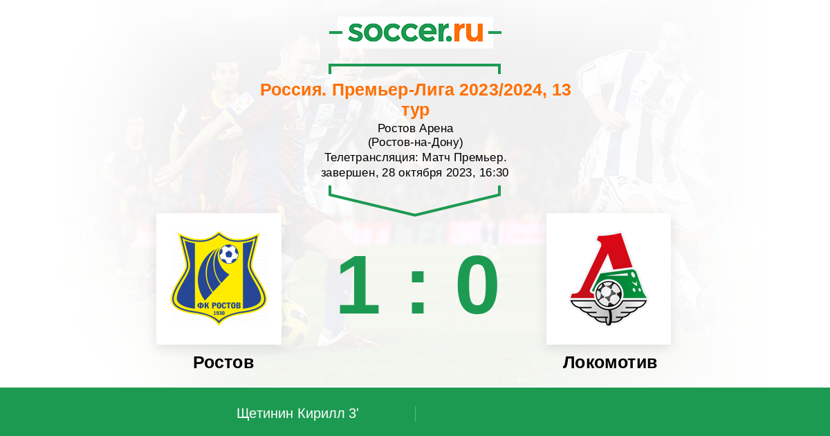 “Ростов” на домашней арене – серьезный соперник. Команда Карпина в этом сезоне Мир РПЛ провела семь матчей на своем поле и потерпела в них только одно поражение. За этот игровой отрезок “желто-синие” отличились 15 раз, пропустив девять мячей в свои ворота. Ровно столько же голов “Локо” пропустил по итогам шести выездных туров, но вот забили “железнодорожники” меньше – 11 мячей. Кроме того, столичная команда одержала в гостях лишь три победы в шести турах. Подводя итоги, отмечаем, что “Локомотив” фаворитом назвать сложно, впрочем, как и “Ростов”. В этом сезоне соперники уже встречались друг с другом в рамках Фонбет Кубка России, где “желто-синие” уступили “Локо” на выезде – 0:1, но смогли выиграть дома – 2:1.