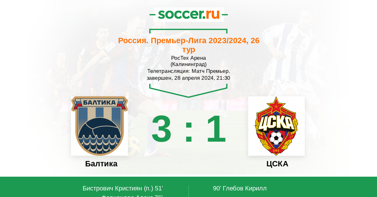 Балтика - ЦСКА ! Безусловно важный матч прежде всего для хозяев . Конкуренты набирают очки и положение у балтийцев опять шаткое . Гости - серьёзная команда и конечно у них свои планы на эту игру .