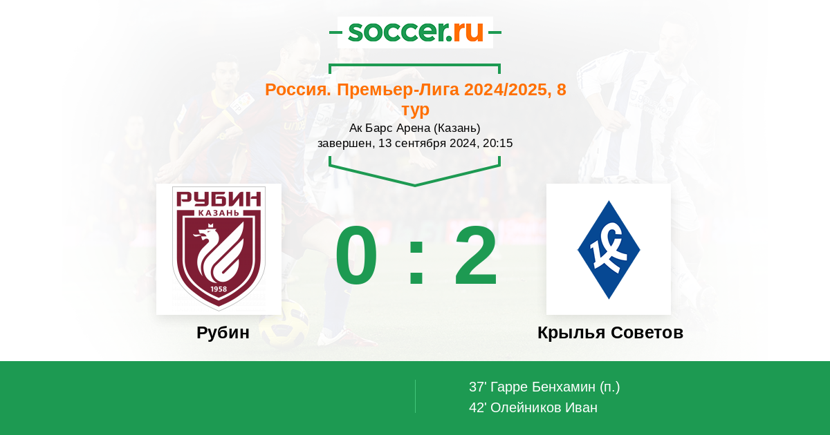 В матче российской Премьер-Лиги между командами Рубин и Крылья Советов рискну предположить победу хозяев. потому как играют дома при поддержке своих болельщиков, плюс результативнее в атаке и надёжнее в обороне.