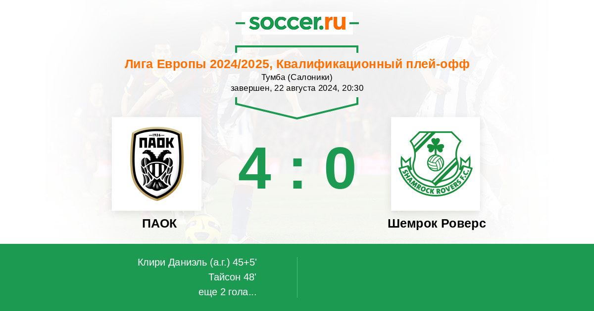 ПАОК - Шемрок Роверс
