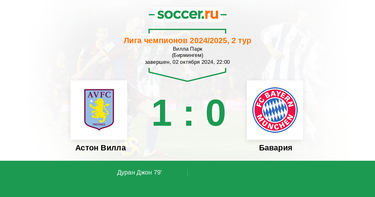 Астон Вилла - Бавария ! Интересный матч , вряд ли гости повторят по голам нечто похожее на первый свой матч но пару штук " закатить " при желании для них не проблема .