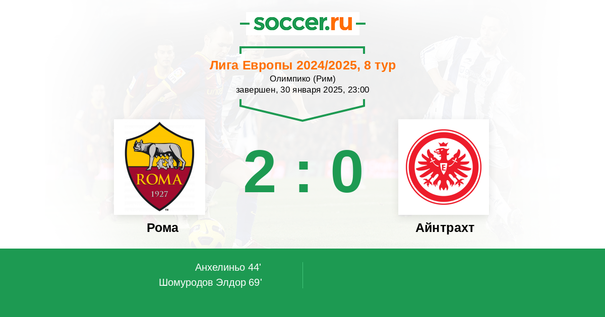 "Рома" сильна дома, и их игра в последних матчах, включая победу над "Удинезе", позволяет ожидать уверенного выступления в решающем матче. "Айнтрахт" будет играть с оглядкой на результаты других матчей, что может снизить их агрессивность.В заключение, "Рома" имеет хорошие шансы на победу, особенно на своем поле, однако "Айнтрахт" — это крепкий и опасный соперник, который может поставить под угрозу планы "Джалоросси", если те не будут достаточно решительными.