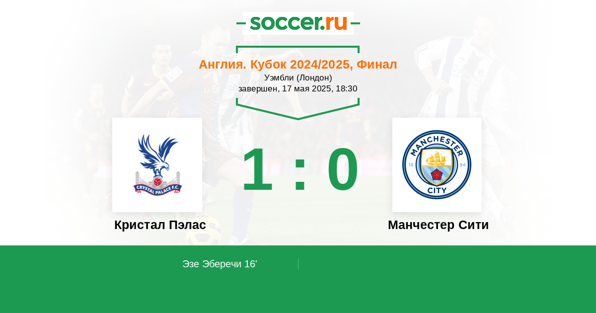 PS Пэлас в АПЛ вел 2-0 у Сити и проиграл в итоге 2-5 .......так что шансы очень мизерные и думаю равны нулю........если только жесткую автобусню выставят и дотерпят до пенальти может КП и выиграет тогда........