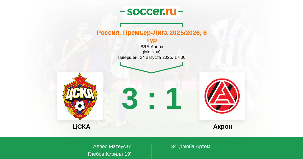 Армейцы сейчас на ходу, а потому должны побеждать у Акрона, который держится только за счет характера, мастерства футболистам явно не хватает. Команда играет на одних эмоциях, в прошлом сезоне такое прокатывало в этом вряд ли.