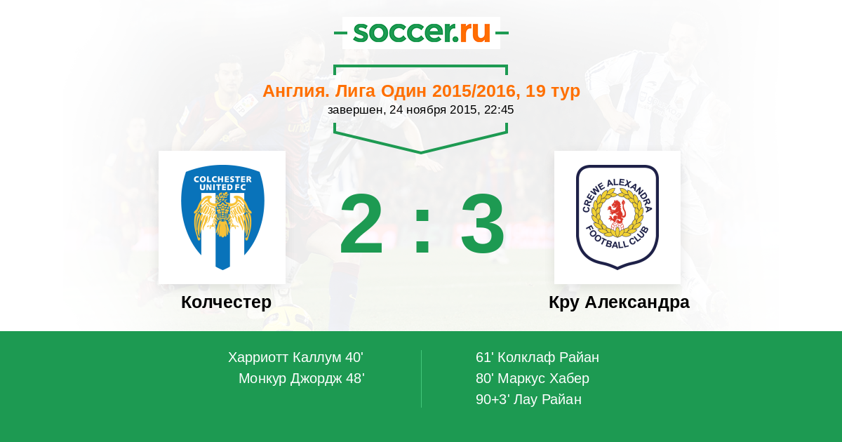48' ГолЛоготип КолчестерМонкур Джордж (10) - 2:0