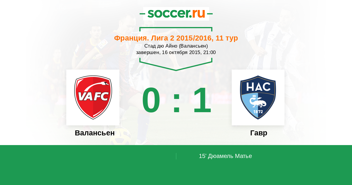 15' ГолЛоготип ГаврДюамель Матье (10) - 0:1