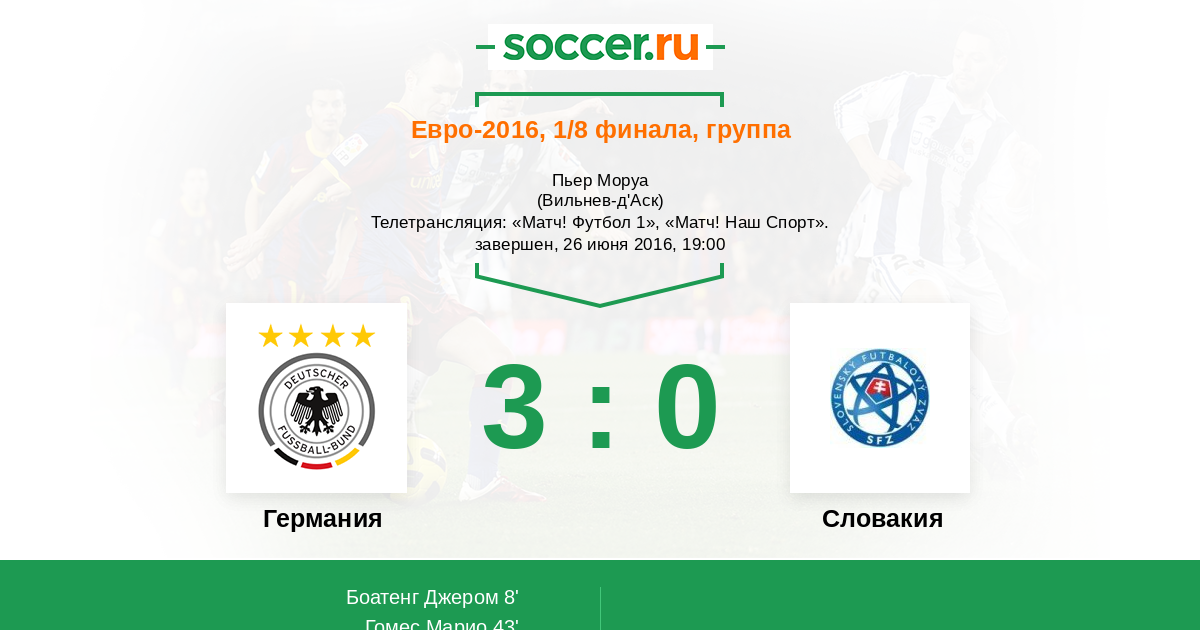 ГОООООООЛ! Марио Гомес забивает второй мяч в ворота Словакии! 2:0!
