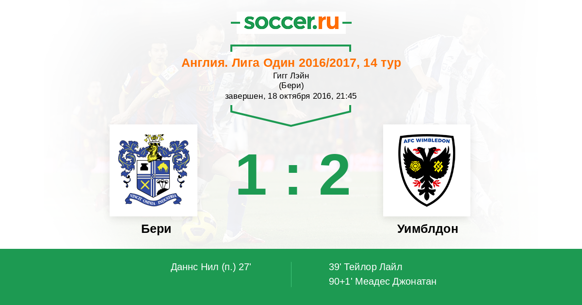 27' Гол с пенальтиЛоготип БериДаннс Нил (16) - 1:0 (П)