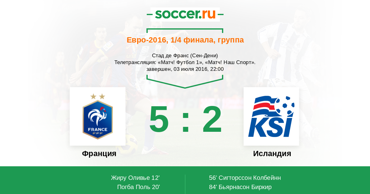 ГОООООООЛ! Оливье Жиру забивает ещё один мяч в ворота Исландии! 5:1!