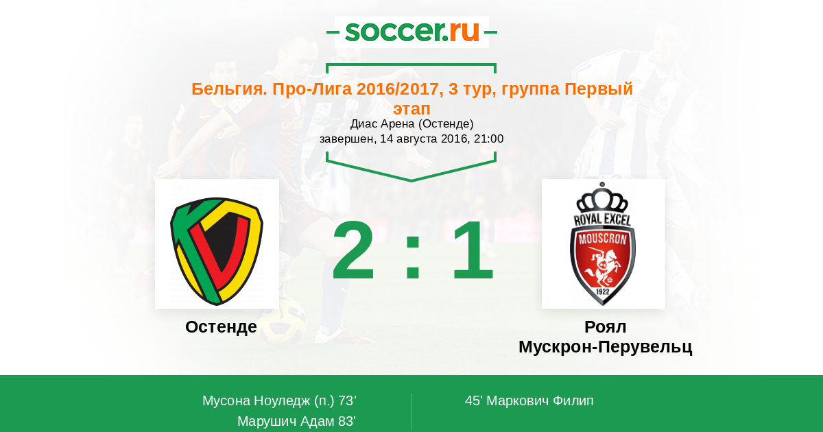 73' Гол с пенальтиЛоготип ОстендеМусона Ноуледж (11) - 1:1 (П)