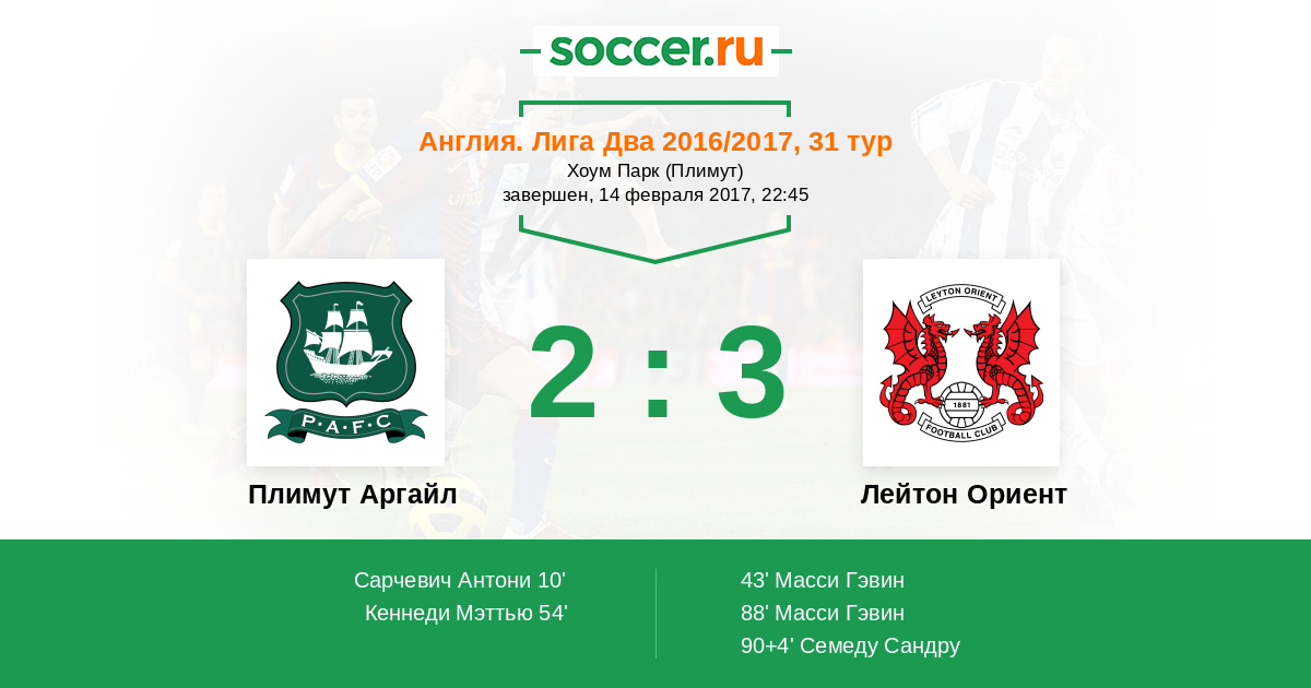 43' ГолЛоготип Лейтон ОриентМасси Гэвин (11) - 1:1