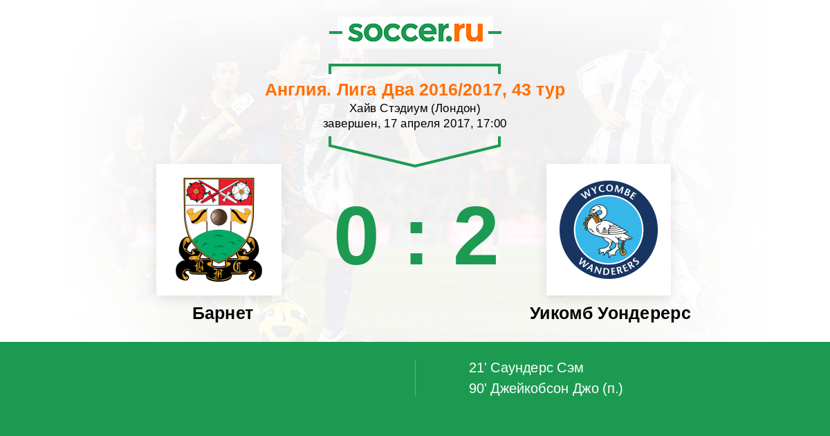 90' Гол с пенальтиЛоготип Уикомб УондерерсДжейкобсон Джо (3) - 0:2 (П)