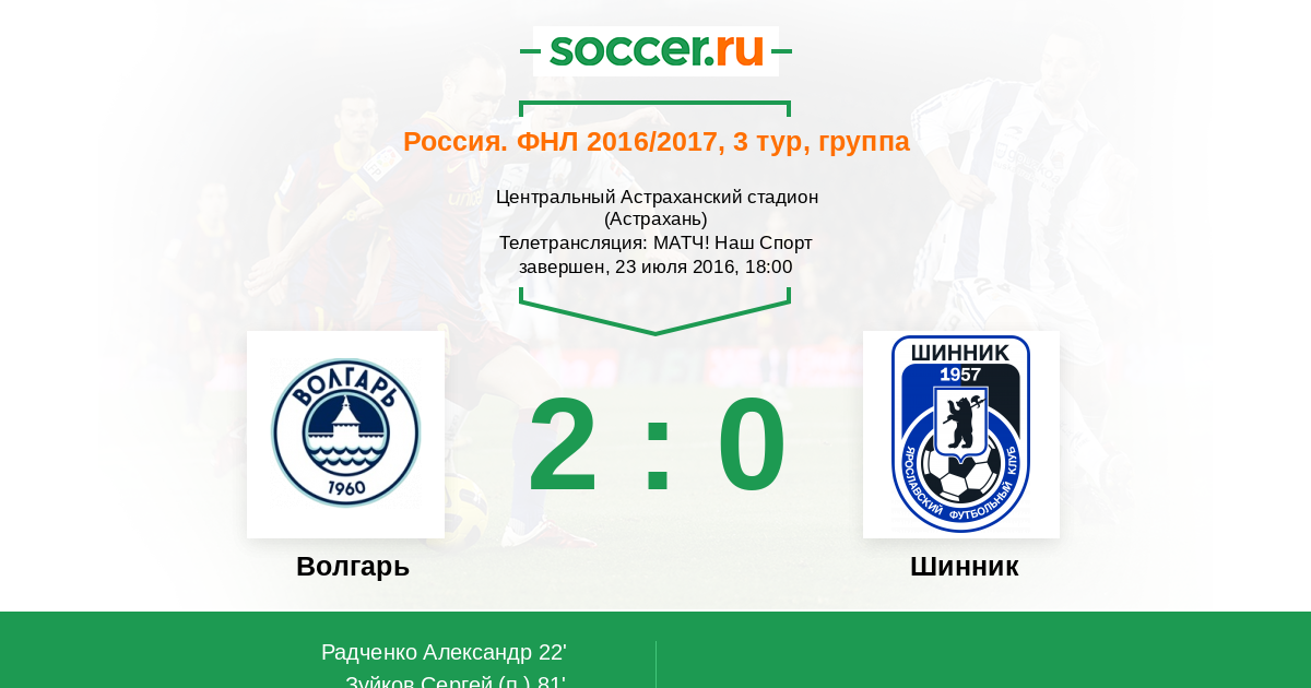 22' ГолЛоготип ВолгарьРадченко Александр (9, н) (Логотип ВолгарьЯковлев Максим (29, п)) - 1:0