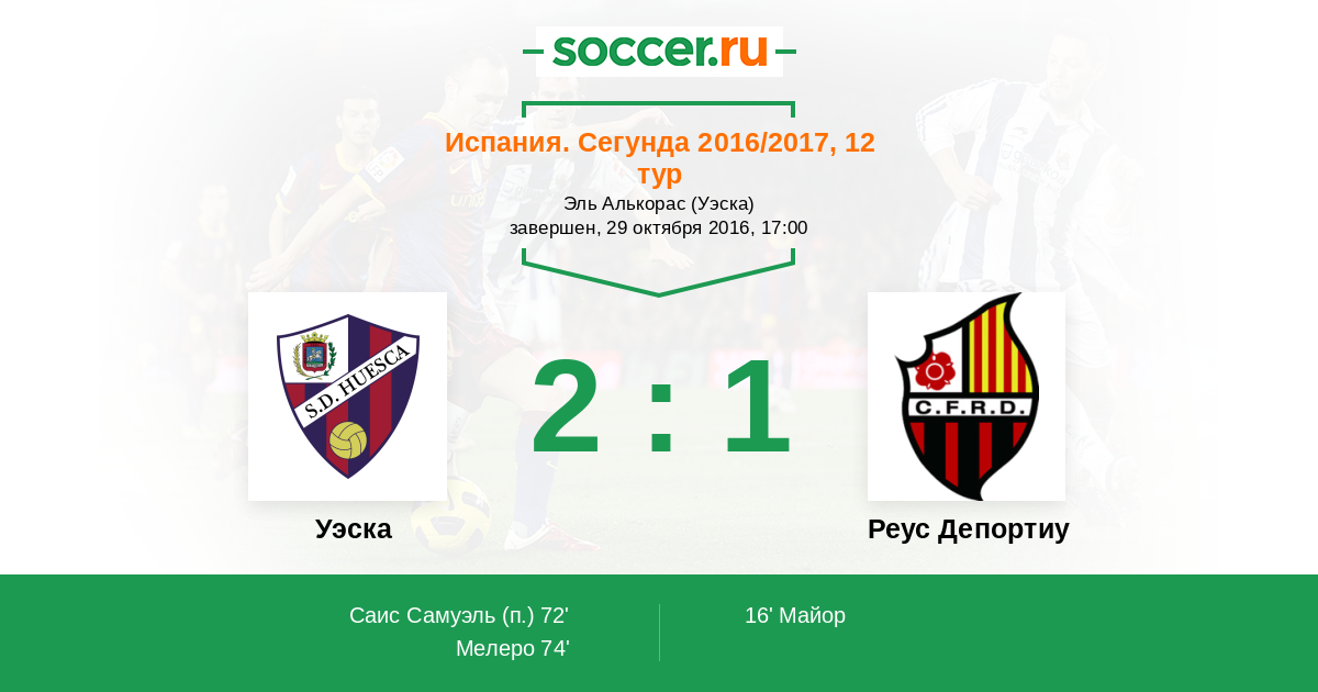 16' ГолЛоготип Реус ДепортиуМайор (21) - 0:1