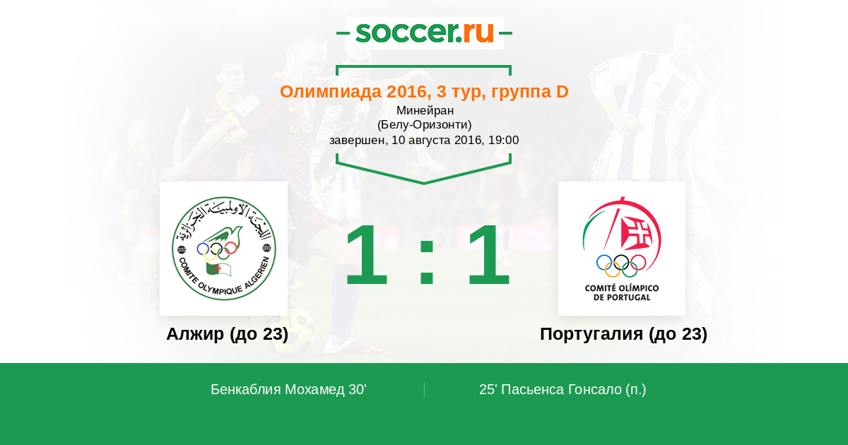25' Гол с пенальтиПортугалия (до 23)Пасьенса Гонсало (9) - 0:1 (П)