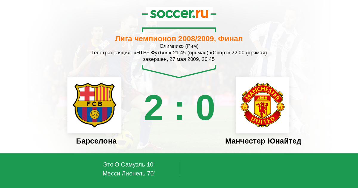 70' ГолЛоготип БарселонаМесси Лионель (н) (Логотип БарселонаХави (п)) - 2:0