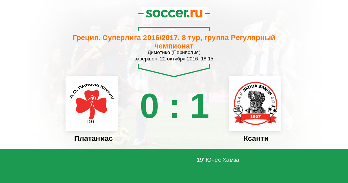 19' ГолЛоготип КсантиЮнес Хамза (9) - 0:1