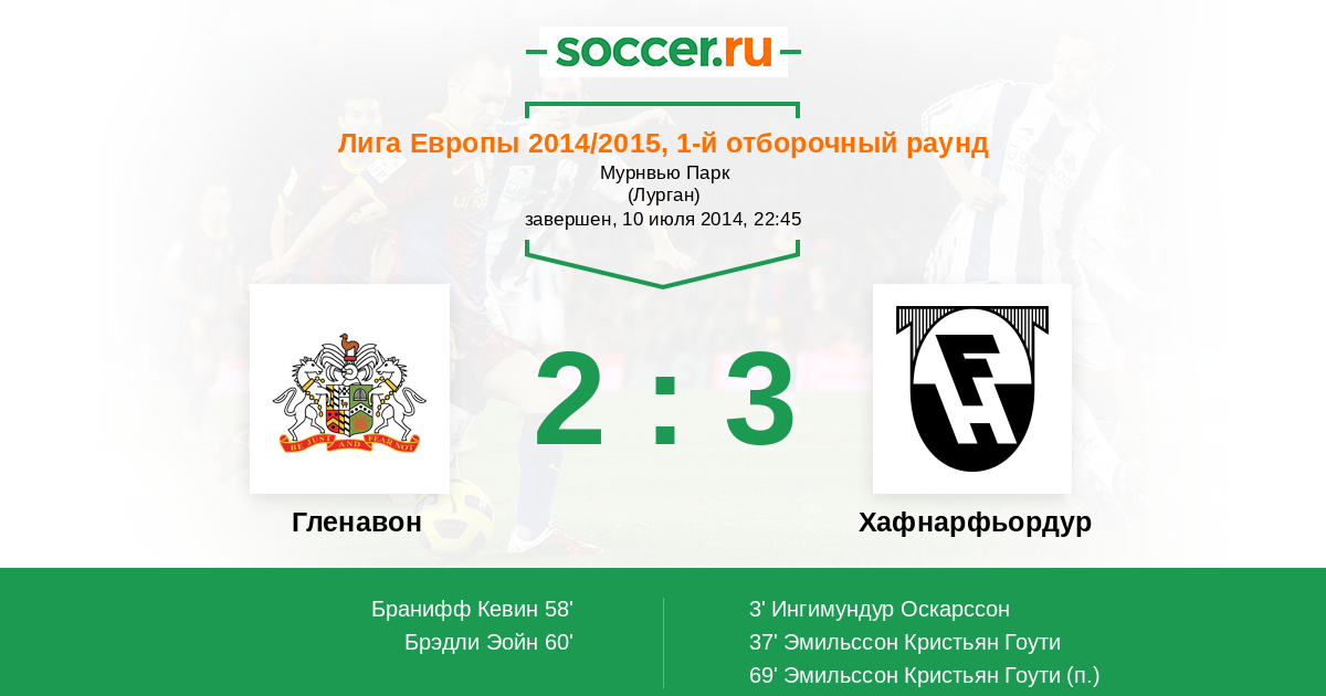58' ГолЛоготип ГленавонБранифф Кевин (22) - 1:2