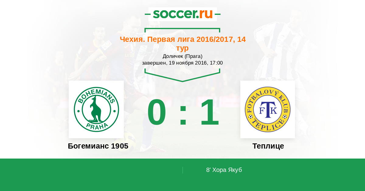 8' ГолЛоготип ТеплицеХора Якуб (13) - 0:1