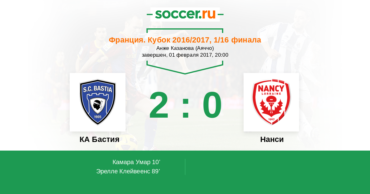 85' ЗаменаЛоготип КА БастияКамара Умар уходит с поля
