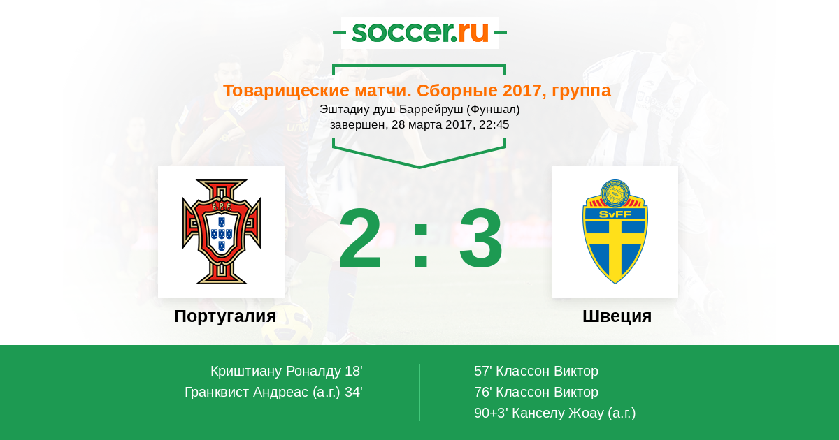 Рон любит забивать Швеции. Интересно, сколько он забьет на этот раз? Думаю, как минимум дубль. Удачи лучшему игроку мира и всей сборной Португалии!
