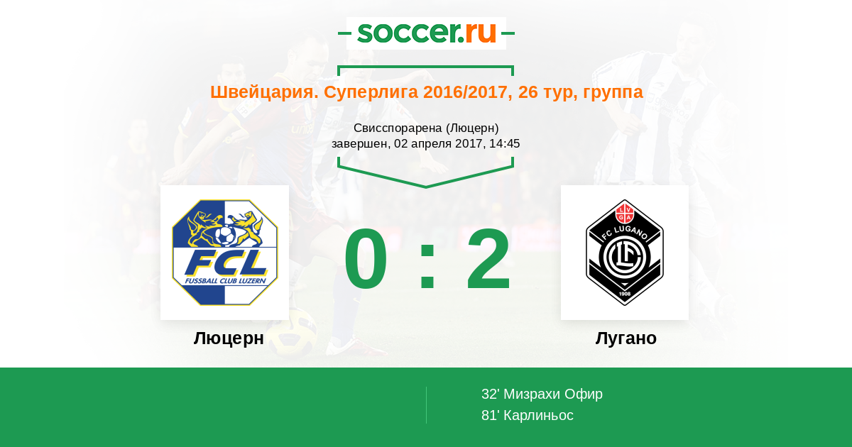 70' ЗаменаЛоготип ЛюцернКошта Рикарду (20) уходит с поля