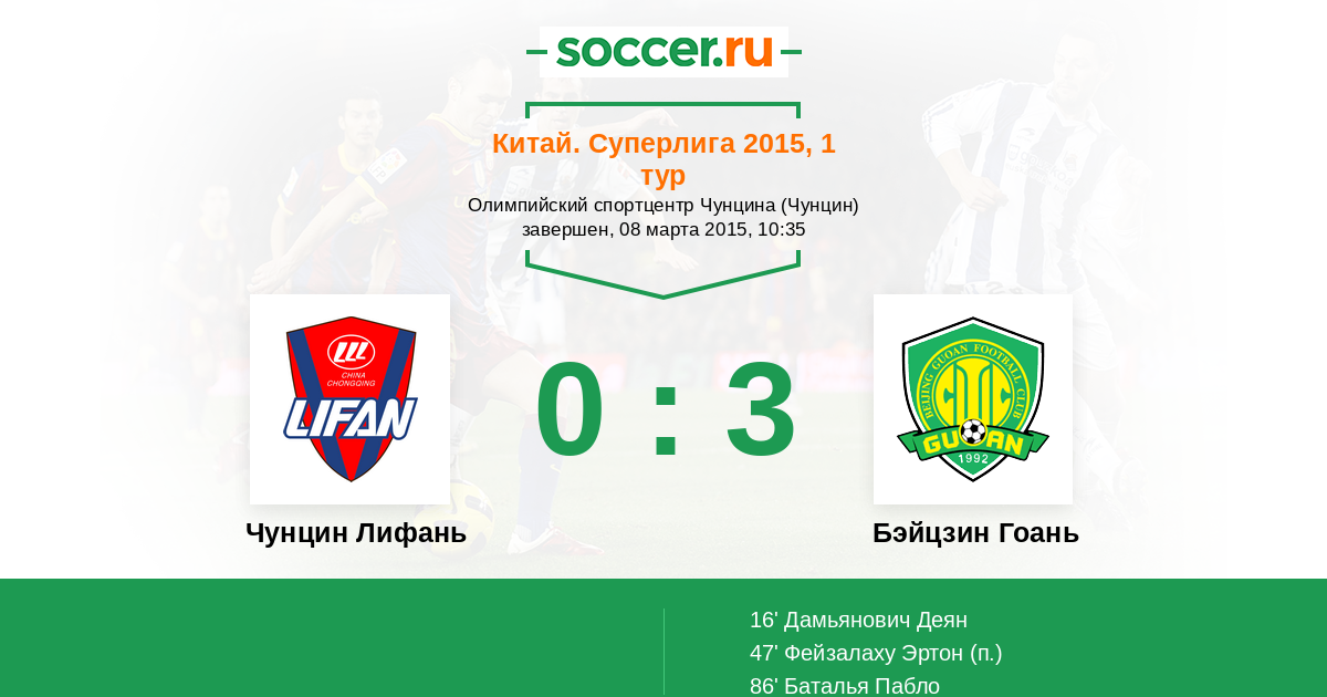 86' ГолЛоготип Бэйцзин ГоаньБаталья Пабло (17) - 0:3
