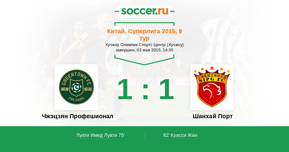 82' ГолЛоготип Шанхай ПортКуасси Жан (17) (Логотип Шанхай ПортЮй Хай (21)) - 1:1