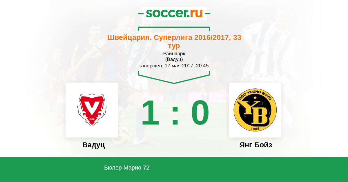 72' ГолЛоготип ВадуцБюлер Марио (29) - 1:0