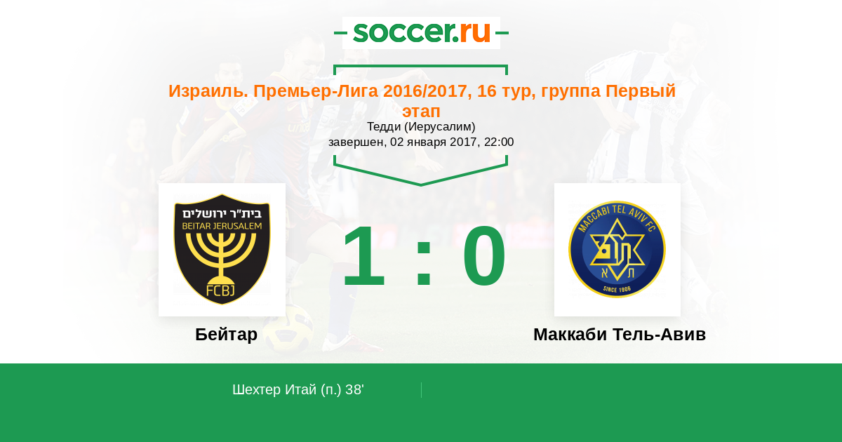 38' Гол с пенальтиЛоготип БейтарШехтер Итай (9) - 1:0 (П)